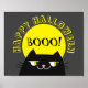 Simples, engraçada, poster de Dia das Bruxas preto de desenho animado e lua de cheio, para festa infantil.