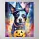 Poster Halloween Blue Heeler Com Pumpkins Assustado