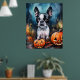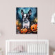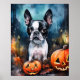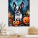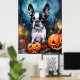Poster Halloween Boston Terrier Com Pumpkins Assustado