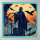 Inspirada pelo estilo tradicional de bloco de madeira japonês, esta ilustração impressionante apresenta uma cena assustadora com Grim Reaper num manto preto e uma cicatriz, em frente a uma grande lua laranja. Os morcegos voam em torno da figura e uma árvore com ramos nu fica em segundo plano, enquanto o céu é azul escuro com nuvens girando. Um gato preto e um jack-o-lanterno sentam-se aos pés da figura, acrescentando ao humor sombrio e temático do Dia das Bruxas desta imagem. Perfeito por adicionar um toque de elegância assustadora às suas decorações de Halloween ou como um presente único para amantes de arte. Esta design é perfeita para qualquer fã de fantasia e Halloween.
