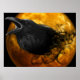 Poster de Halloween mostrado com um corvo em impressão de lua. Personalize este item ou comprar como está.