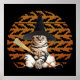 Este cômico amante de gatos no feriado de Halloween é um presente de excelente para um homem, uma mulher, um adolescente e uma criança que adoram gatos e Halloween. Purr-fect para vestir como parte de uma fantasia para uma festa de Halloween ou durante truques ou tratamentos. Se você ama Fall, abóboras, Halloween, bruxas e gatos, esta design festiva é para você! Apresenta um gráfico engraçado de um gatinho de mesa vestindo um chapéu de bruxa e segurando uma vassoura, sentada em frente a um padrão de morcego assustador laranja.