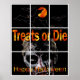 "Treats or Die" A Poster de Zombie das Halloween faz uma decoração de Halloween excelente. Lembre-se de ter sempre muitas guloseimas à mão para os Zombies do Dia das Bruxas