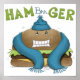 O hambúrguer engraçado parece uma preferencialmente infantil. Ele veste um chapéu e cachecol enquanto escurece nesta imagem humorística de brincar com as palavras. A legenda diz, "HAMbrrGER". Ilustração original de Christie Black of Creations do Coração.