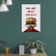 Um homem com hambúrguer como cabeça. Uma peça de palavras para a expressão "você é o que você come". Personalize este excelente com seu próprio texto, monograma, logotipo ou mensagem pessoal! (clique no botão laranja "Personalizar!" acima)