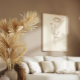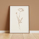 Hand drawn boho botanical line art illustration, cottagecore wall art. Simple poppy flower print. Minimalist abstract floral design. Modern, neutral, earthy color palette, tan brown drawing on beige background.