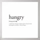 Hangry: Um estado híbrido de fome e raiva causado pela falta de comida; mal-humorado ou irritável como resultado da fome.