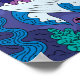 This charming and vibrant illustration depicts a friendly, stylized shark swimming in a whimsical underwater scene. The shark, predominantly in shades of blue and white, has a large, open mouth revealing jagged, but not menacing, teeth, and wide, expressive eyes. Its body is adorned with circular and wavy patterns. The surrounding deep blue-purple water is filled with various colorful elements of marine life, including pink coral, green and teal seaweed, and floating bubbles, all outlined in a darker shade. The overall style is cartoonish and playful, creating a lighthearted interpretation of the ocean and its inhabitants.
