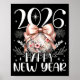 Poster Happy New Year 2026 Disco Cute Bow Flower New Year