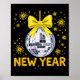 Happy New Year 2026 Golden Disco Ball Bow New Year Eve Girls