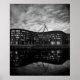 Esta impressionante fotografia a preto-e-branco captura a beleza serena da arboricultura de Duisburg durante um frio passeio de inverno. O charme industrial do porto está em cheio, com um edifício histórico perfeitamente refletido nas águas calmas abaixo. No centro, uma grua em torre serve como um lembrete das raízes trabalhadoras da cidade, acrescentando contraste e força à reflexão calma. Os tons monocromáticos destacam texturas e luz, criando um eterno, uma peça atmosférica que combina arquitetura, indústria e natureza em um momento solteiro de beleza silenciosa.