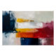 Blocos de cores vibrantes se encontram e se separam como emoções em constante movimento. A fusão de azul profundo, vermelho intenso e amarelo radiante cria uma sinfonia visual moderna.