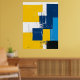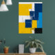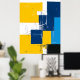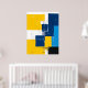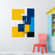 As formas geométricas sobrepostas criam camadas de profundidade e movimento, equilibrando cores vibrantes e sutis. A fusão de precisão e fluidez transforma o espaço com uma estética moderna, onde cada elemento se conecta em perfeita harmonia visual.