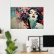 Uma obra-prima digital que funde a beleza humana com a abstração geométrica. Tons vibrantes de coral e turquesa explodem em torno de um rosto sereno, criando um contraste hipnótico entre a calma interior e a energia exterior. Arte moderna ideal para decorar com sofisticação.