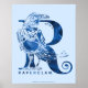 Confira este gráfico de Ravenclaw baseado no feitiço de fazer água Aguamenti. Este apresenta um corvo azul em frente a uma letra "R" gigante com o nome "Ravenclaw" escrito abaixo.
