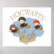 HARRY POTTER™ | Confira esta adorável ilustração de Harry, Hermione e Ron voando em vassouras sobre o Castelo HOGWARTS™!