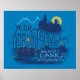 Esta bela imagem tipográfica mostra os contornos dos estudantes que viajavam pelo lago em barcos para o Castelo de Hogwarts à noite. Diz: "Estudantes do Primeiro Ano Viagem no Grande Lago Negro a Hogwarts" em letra serif enubrecida entre os estudantes e Hogwarts à distância.