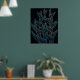 Poster com trabalho de arte gráfico floral, versão preta de "Heliconia Rostrata", flores tropicais exóticas em cores noturnas - preto, azul marinho, lacas e gotas de amarelo. Arte digital, desenho desenhado à mão e algumas manipulações digitais, 2017. © Julia Khoroshikh www.juliakhoroshikh.art #heliaconia #tropicalflower #floralart #blackfloral #darkfloral #posters #wallart #zazzlemade