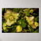 Este poster de fotografia de arte apresenta lindas flores brancas pálidas, douradas, amarelas e cor-de-rosa, cercadas por folhagem verde para formar uma impressão antiga e antiga. Também conhecida como Rosa de Natal e Rosa de Lenten, esta flor perene verde é uma das primeiras plantas a florescer no jardim da primavera.