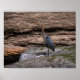 Um Excelente Blue Heron espera por peixes no Watts Mill cai em Indian Creek em Kansas City, Missouri. As quedas estão em um parque idílico, onde muitos pássaros encontram refúgio da movimentada cidade que o rodeia. O parque era um parque de campismo para pessoas a caminho do Oregon, Califórnia e Papais noeis Fe Trails. O Herão Azul Excelente (Ardea herodias) é uma ave grandiosa na família herônica Ardeidae, comum perto das margens de água aberta e em pântanos na maior parte da América do Norte e da América Central, bem como no Caribe e nas Ilhas Galápagos. Um moinho vulgarmente conhecido como Watts Mill (primeiro conhecido como Fitzhugh's Mill) ficou na margem norte do Creek Indiano onde o riacho fluía através de rochas planas e tropeçava sobre uma cascata. Este local, na área de arborização sombria da Rua 103 e da Linha Estatal, foi dedicado a 10 de junho de 1974, como um local histórico.