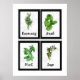 Esta erva preta, enquadrada por poster, pareceria excelente num compro de chá ou como uma decoração doméstica. Estas são fotos de rosmaninho, manjericão, menta e sábio.