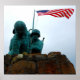Fotografia com a perspectiva única de "olhar para cima" nos oficiais americanos de Marines e Marinhos memorializados na Batalha de Iwo Jima. Esta estátua em particular está localizada no Memorial da Guerra do Pacífico, na base do Corpo Marinho no Havaí, na ilha de Oahu.