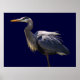 Este poster de fotografia de arte apresenta o Excelente Blue Heron, um grande pássaro percorrido na família herônica Ardeidae, comum perto das margens de água aberta e em pântanos. Ele é o maior herão norte-americano. Entre as características notáveis contam-se penas de voo, coxas avermelhadas, e um par de vermelho-castanho e preto para cima dos flancos; o pescoço é uma cinza enferrujada, com o preto e branco a passar pela frente; a cabeça é mais clara, com um rosto quase branco, e um par de plumas pretas a correr de cima para trás da cabeça. As penas no pescoço inferior são longas e pluma. Porque esta é a época de reprodução, ele também tem plumas nas costas inferiores e uma folha de laranja. Suas penas são iluminadas de trás pela luz luminosa do sol.
