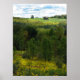 Uma pequena casa está empoleirada nas colinas do norte de Nova Iorque. A vista do morro é adorável. Os campos de dourado, iluminados pelo sol, são acentuados por árvores eververdes, resultando em camadas horizontais alternadas de ouro amarelo e tons de verde. Nuvens fofas se moveram no céu azul. Segure esta poster na sua parede e finja que é uma janela!