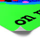O gato com aspecto trivial, cercado por bolhas coloridas no arco-íris e por um fundo verde-ácido, parece estar num transe. O texto diz, "Por que você está eclodindo no meu zumbido, cara?"