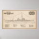 Planos de nave HMS Dreadnwing. Bateria Icônica da Primeira Guerra Mundial dos Britânicos. Design no projeto, plano ou planos, estilo de diagrama com especificações ou especificações de informações de dados de entrega.