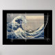 Outra versão da série "Hokusai encontra Fibonacci." Espiral Fibonacci sobreposta à "Onda Excelente" de Hokusai. Sequência fibroônica, ouro fascinante artistas e cientistas por séculos. Com construção, linhas de dimensão e grade.