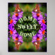 Uma borboleta-de-vidro castanho-branca num abstrato de flores de gesso roxo selvagem da Nova Inglaterra com as palavras Home Sweet Home. Fotografia natural de Susan. Visite a página Perfil para encontrar links para todas as minhas lojas.