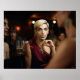 Fotografia de um belo jovem pastor em um vestido de coquetel e joias elegantes em um bar com amigos. Feito com algoritmos generativos e Photoshop. Este é outro design de 100% original de Hamster de Combate.