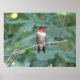 A poster apresenta uma fotografia de um macho do Hummingbird Rúby com garganta vermelha brilhante.
