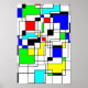 Formas geométricas inspiradas pelo trabalho de Piet Mondrian. Linhas irregulares formando quadrados e retângulos. Arte digital decorativa original.