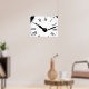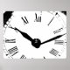 Um impressão preto e branco único com pop de arte apresentando a face de um relógio.