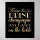 Póster Hora de Beber Champanhe Citação Dourada Negra