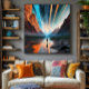 Um viajante solitário caminha entre as montanhas torrenciais espelhadas em águas calmas, enquanto o céu estoura com feixes cósmicos de luz. A cena combina natureza e universo, convidando a reflexão sobre a viagem interior e a vastidão dos sonhos humanos.