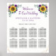 Este gráfico de 8 mesas apresenta um design moderno com girassóis de cor d'água, rosas roxos e elementos geométricos falsos de ouro. Personalize com seu próprio texto. Itens de suíte de casamento também disponíveis.