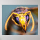 Imagem macro de um rosto de corneta. Detalhes incríveis em seus olhos roxos inchados, antenas amarelas salientes e mandíbulas. Excelente para entusiastas de insetos.