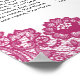 Hot pink and black wedding seating chart for 12 tables featuring elegant floral lace.