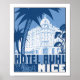 Vintage art deco poster de viagens para o Hotel Ruhl, Nice na Riviera francesa.