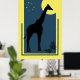 Um Poster de Estilo de Imagem Retroativa Geométrica para o Destino de Zoológico Houston no Texas, Estados Unidos. É o zoológico de Houston. A design representa uma girafa à noite com lua, estrelas e folhas de palma. Ideia perfeita de presente ou decoração doméstica para zoólogos e para aqueles que amam animais, vida selvagem, zoológicos e jardins botânicos.