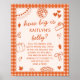 Celebrate in style with this fun and very trendy baby shower game sign. Simply include a roll of ribbon or twine and let your guests guess the size of the mommy-to-be's belly size by cutting the ribbon to the length they think her belly is. The guest who comes closest to the actual size will win a prize of your choice. The design is easy to personalize with your own wording and your family and friends will be thrilled when they see this fabulous party game sign. Matching party items can be found in the collection.