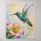 Poster Hummingbird e Flor de Cores Aquáticas