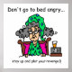 T-shirt do humor das horas de dormir, canecas, ímãs, cartões, etiquetas, bolsas, mousepads, travesseiros, ornamento, caixas da lembrança, e mais com pensamentos de Stella em horas de dormir. Proclama que você não deve ir para a cama irritado mas permanecer acima e traçar sua vingança!