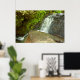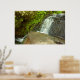 A peaceful cascade at Hungarian Falls flowing over dark rock surrounded by lush green moss and forest foliage. The soft movement of water and rich natural textures create a calming woodland scene perfect for relaxing, nature-inspired decor.