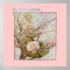 Uma bela imagem de vintage pré-1923 que representa a rima de viveiro "Hush-A-Bye-Baby". A imagem mostra um bebê em um berço que está sentado em uma árvore com flores rosa pálidas.