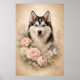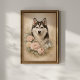 Poster Husky Siberiano com Rosas