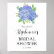 Este poster de chá de panela de aquarela apresenta um buquê de flores de hidrangea, púrpura, com folhagem e folhas de eucalipto. Personalize-o com o nome da noiva e a data do chá de panela. Produtos correspondentes disponíveis.